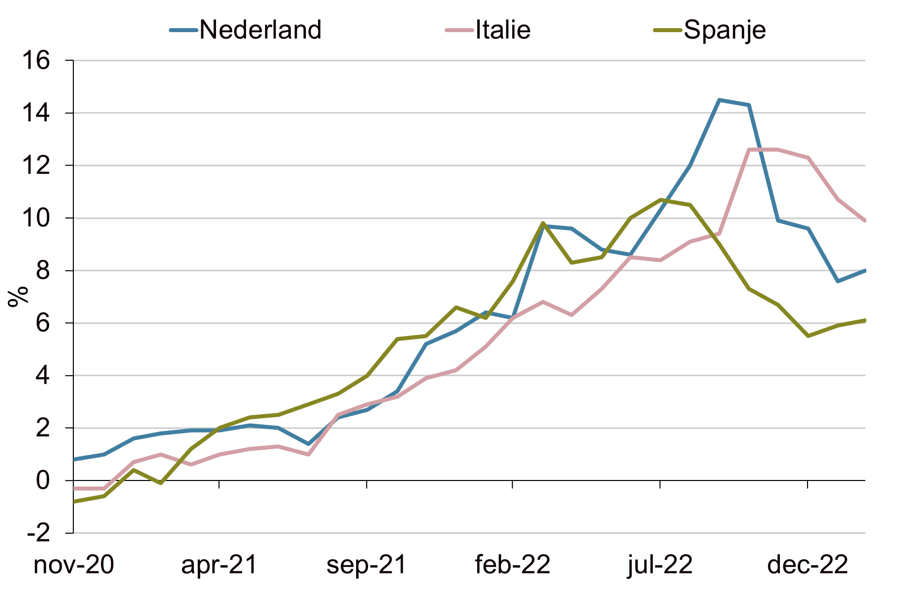 De Europese inflatiecijfers die afgelopen week naar buiten kwamen vielen tegen. De cijfers lagen voor het grootste deel hoger dan verwacht en lieten zien dat de inflatie in een aantal landen - na enkele maanden van daling - weer stijgt. De Nederlandse inflatie kwam uit op 8,0% op jaarbasis tegen 7,6% een maand eerder. Ook de Spaanse en Franse inflatiecijfers kwamen met respectievelijk 6,1% en 6,2% op jaarbasis hoger uit dan verwacht. Voor de eurozone als geheel kwam de inflatie op maandbasis uit op 0,8%. Hoger dan de verwachting van 0,5% en voor het eerst sinds oktober vorig jaar weer een toename op maandbasis. De hardnekkig hoge inflatie betekent dat de ECB het monetaire beleid verder moet verkrappen. Lid van de raad van bestuur van de ECB Pierre Wunsch stelde afgelopen week dat een beleidsrente van boven de 4% mogelijk in het verschiet ligt als de inflatie niet naar beneden komt.